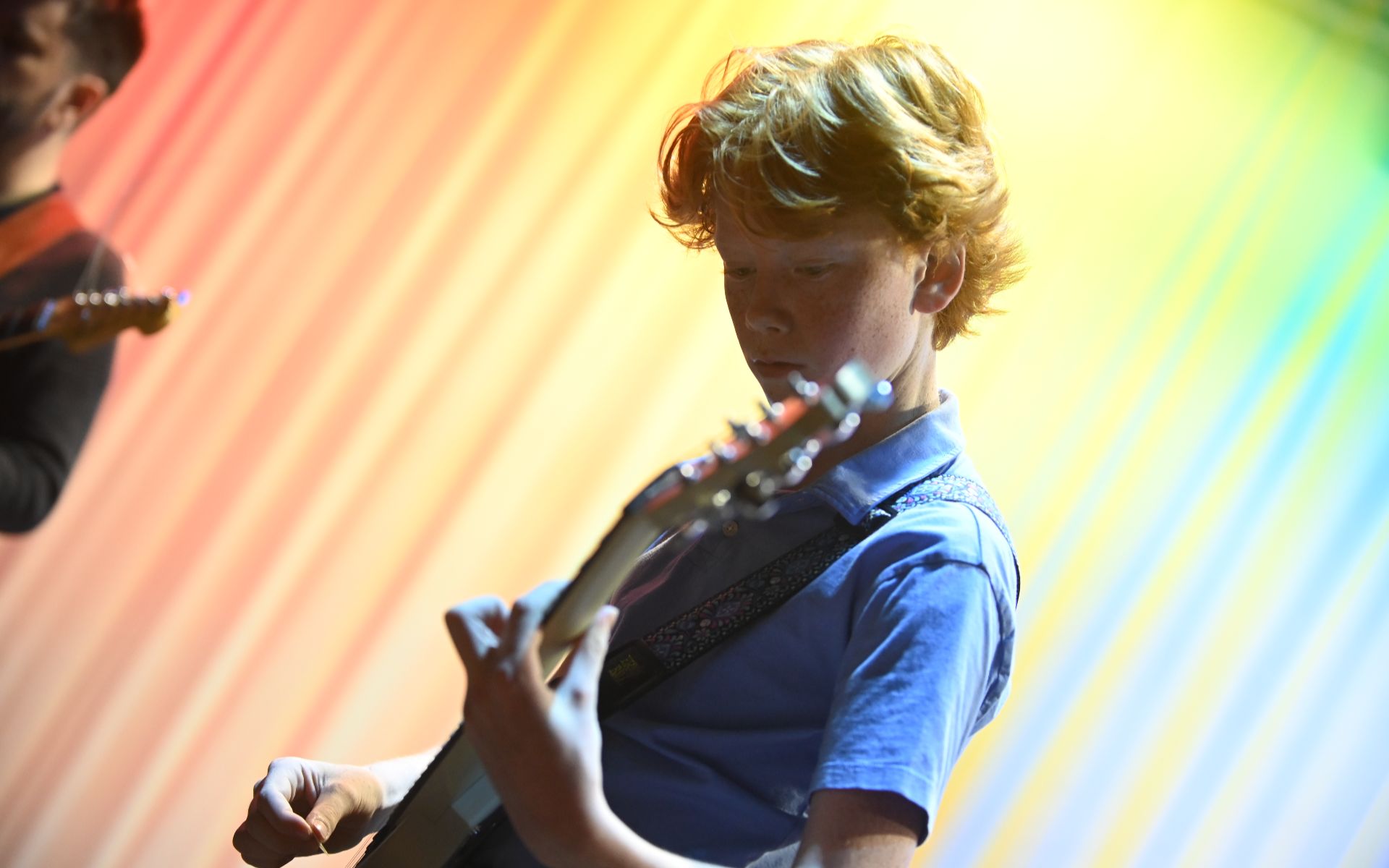 Upper School music continues with foundational instruction in fifth and sixth grade, where all students participate in a core music class, followed by a shift to elective, choice-based offerings in the seventh and eighth grades. Students build proficiency by mastering musical fundamentals like rhythm patterns and form, and by analyzing how composers utilize elements such as modes, tempo, and dynamics to shape the emotional impact of a piece. The curriculum balances technical skill and a focus on performance, with preparation for concerts while refining vocal technique, achieving vocal blend, and mastering ensemble coordination.
